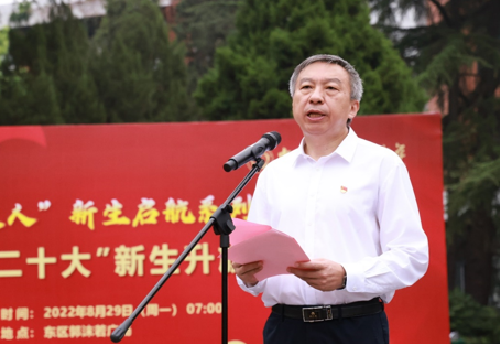 舒歌群在讲话中指出,中国科大是由老一辈科学家和革命家共同缔造、承载着光荣和梦想的大学,始终与祖国同心、与时代同行。他强调,今年是中国共产党第二十次全国代表大会召开之年,也是进入全面建设社会主义现代化国家、向第二个百年奋斗目标进军新征程的重要一年。他期望,新生们能坚持“仰望星空”的学术理想,努力探索科学前沿,勇攀科学高峰,为新时期祖国科技创新事业撑起的一片天;坚持“脚踏实地”的实干精神,发挥“孺子牛”的韧劲,认真打好数理基础,注重德智体美劳全面发展,在知行合一中立大志、明大德、成大才、担大任;坚持胸怀“国之大者”的使命担当,大力传承弘扬“两弹一星”精神、老一辈科学家精神,将爱国主义情怀融入个人的理想和追求中去,把个人的前途同国家和民族的命运紧紧联系在一起,将“小我”融入“大我”,学成文武艺,用实际行动报效祖国和人民。
