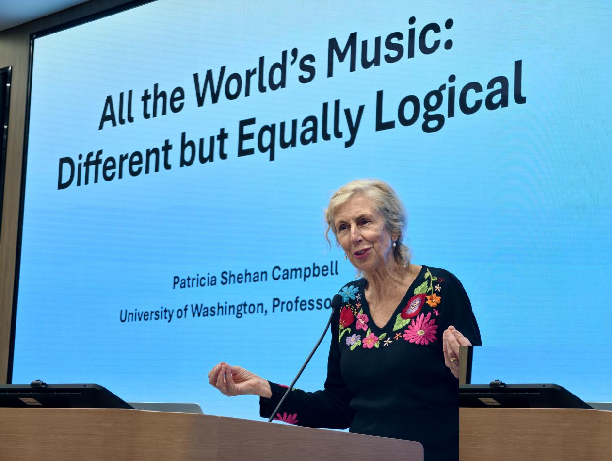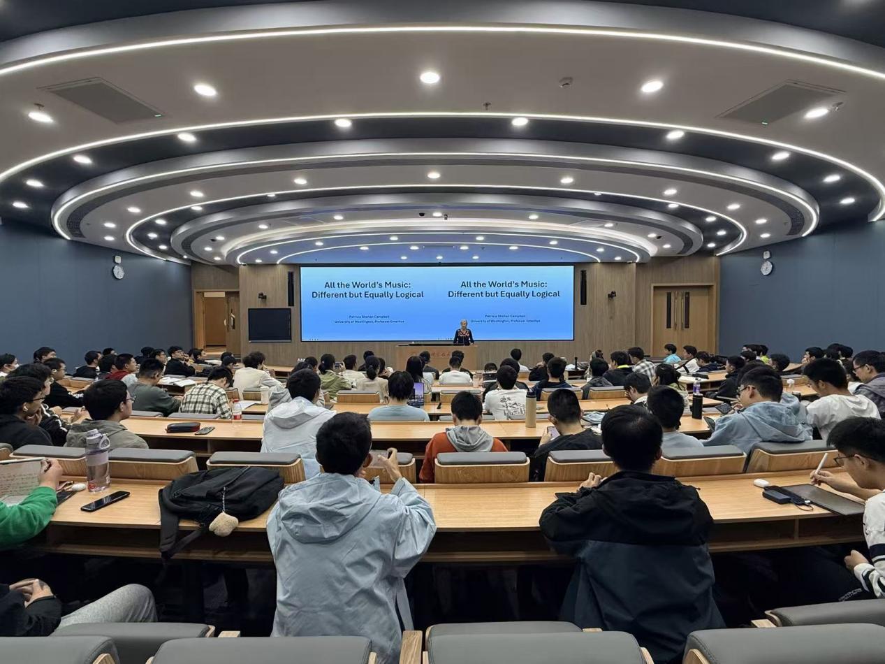 11月6日晚,墨子艺术讲堂·第十一期《世界音乐万象:各异其趣,逻辑相通》讲座在东区第五教学楼101教室顺利举办。讲座邀请美国华盛顿大学音乐系知名教授、国际著名音乐教育家Patricia Shehan Campbell现场开讲,我校八十余名师生积极参与。本次活动由艺术教学中心主办,面向全校师生,通过民族音乐学的视角,探索了爱尔兰与印度、韩国与肯尼亚、德国与日本等地音乐的声响特质、结构特征与社会功能,在呈现不同文化间音乐共性与差异的同时,深入审视音乐普遍性的哲学命题。